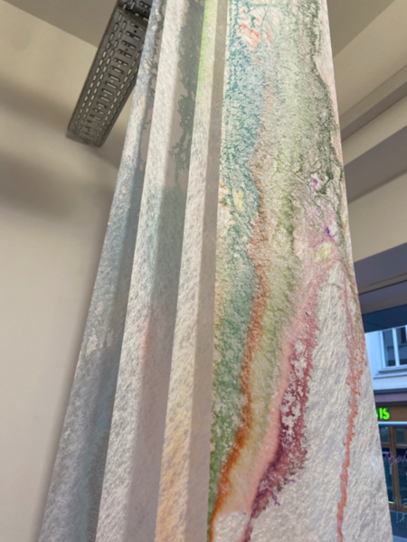 Die vergossenen Tränen verändern unseren Blick auf die eigene Perspektive, hinterlassen eine poetische Spur, die sich verändert und auch Einfluss auf andere Geschichten nimmt. Das Trauern, Lachen, Emotionen zulassen oder Loslassen ist ein persönliches Erlebnis, das auch bei dieser Interaktion intim und der Öffentlichkeit zunächtigen verschlossen bleibt. Doch schreibt es sich die Beweinung anschließend geheimnisvoll in den Raum als gemeinschaftliches Bild ein und greift in andere Geschichten ein. Denn das Weinen hat Einfluss auf unsere eigene Erzählung und die Geschichten um uns herum.