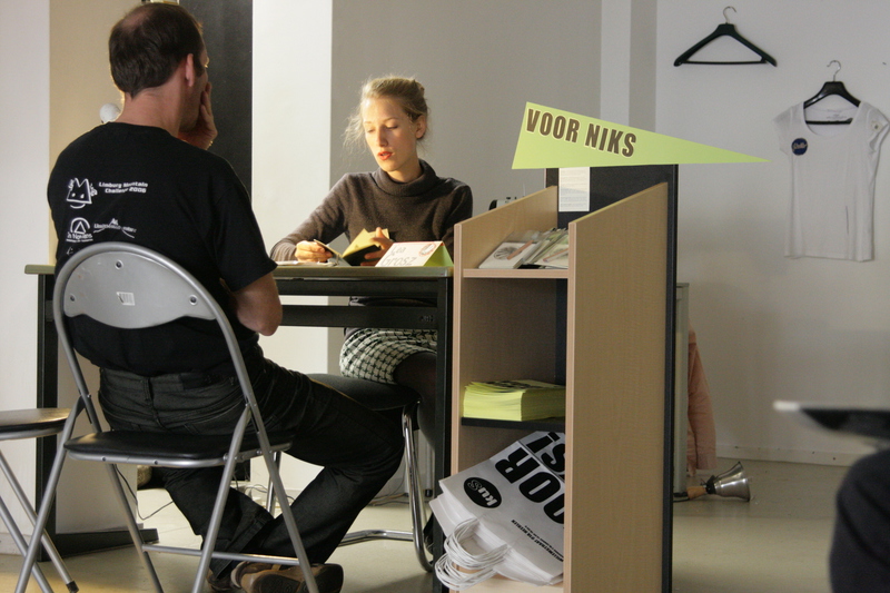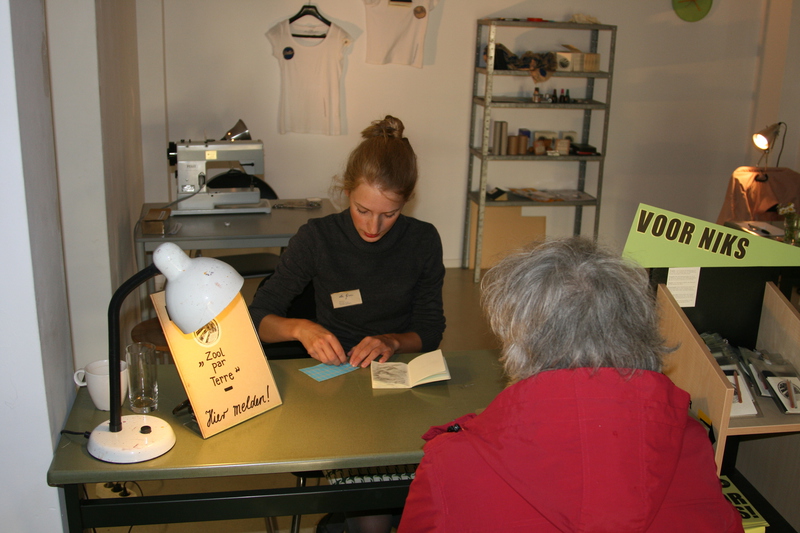 Das Büro "Zool par Terre" (Sohle am Boden) eröffnete in der Galerie "KuS" in Heerlen (Niederlande) 2010 zur Ausstellung "voor niks" (für nichts), bei der es um Give-Aways und die kostenfreien Aspekte der Kunst ging, für eine Woche seine Türen.