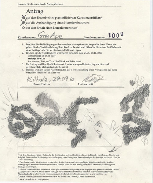 Durch das Vorweisen des bearbeiteten Passes (WandelingBoekje) wurden die Rezipienten zu den Akteure und damit zum Kunstwerkes selbst. Der Rezipient wurde so zur gleichenzeit zum Künstler und zum Kunstwerk selbst erhoben. Das Künstlerduo aus Lea Grosz und Oliver Peiler avancierte zum Dienstleister, oder?